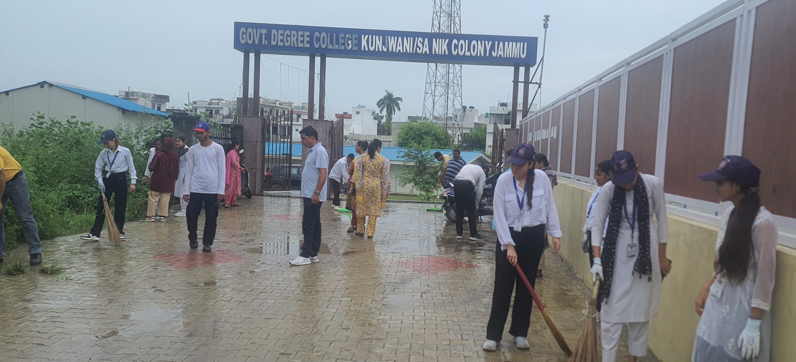 Jammu, August 1 : As a part of series of activities to be carried out to commemorate 77 years of Independence, Staff and NSS Volunteers of Govt. Degree College Kunjwani conducted campus cleanliness drive on 01.08.2024 under Shikshit Bharat Viksit Bharat. The whole event was organized under the able guidance and supervision of Prof. (Dr.) Manisha Sarup Kohli, Principal of the College. Nearly 40 students participated in this drive with great zeal and enthusiasm. They cleaned the college campus, playground, parking area and collected plastic garbage from every nook and corner of