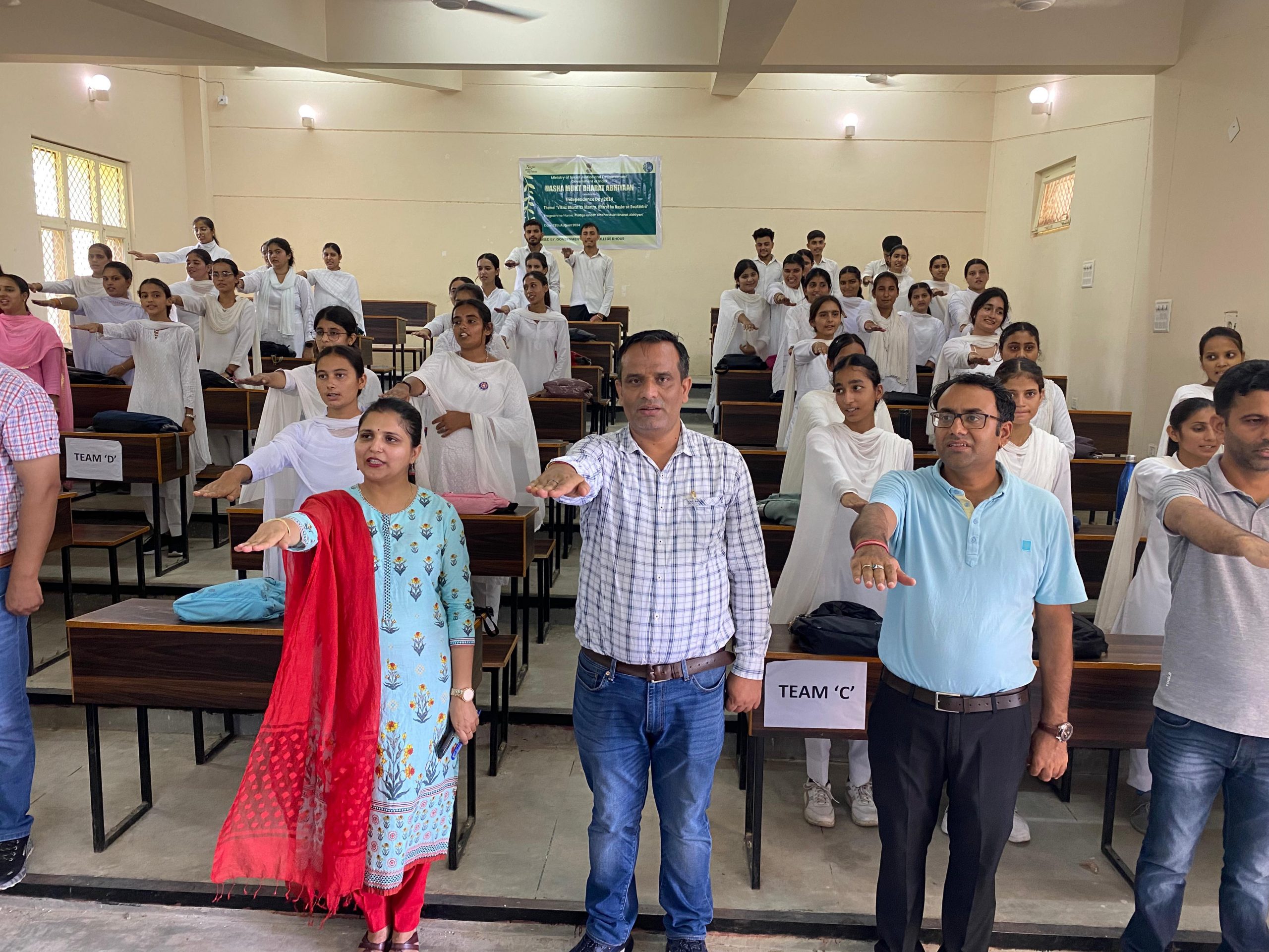 Jammu, August 13 : Government Degree College Khour organized Pledge ceremony on 13 th August 2024 at 11:45 am to celebrate Nasha Mukt Bharat Abhiyan (NMBA) under the theme “Viksit Bharat Ka Mantra, Bharat Ho Nashe Se Swatantra”. Around 40 students participated in the pledge taking ceremony alongwith teaching/non- teaching staff of the College. In his brief address, Principal Prof. Dr. T K Sharma motivated the gathering to have sense of commitment in themselves to create a drug free environment in their surroundings so that youth can be empowered to lead healthier and more productive lives. The whole event was coordinated by Lt. Shivani Sharma ANO NCC and Prof. Himanshu Khajuria, NSS PO. Dr. Chetan Sharma, HOD Physics Prof. Khalid Sajad Bohra, HOD History, Prof. Sunil Kumar, HOD Urdu, Dr. Deepti Gupta, HOD Sociology and Mr. Sunil Kumar PTI were also present in the event.