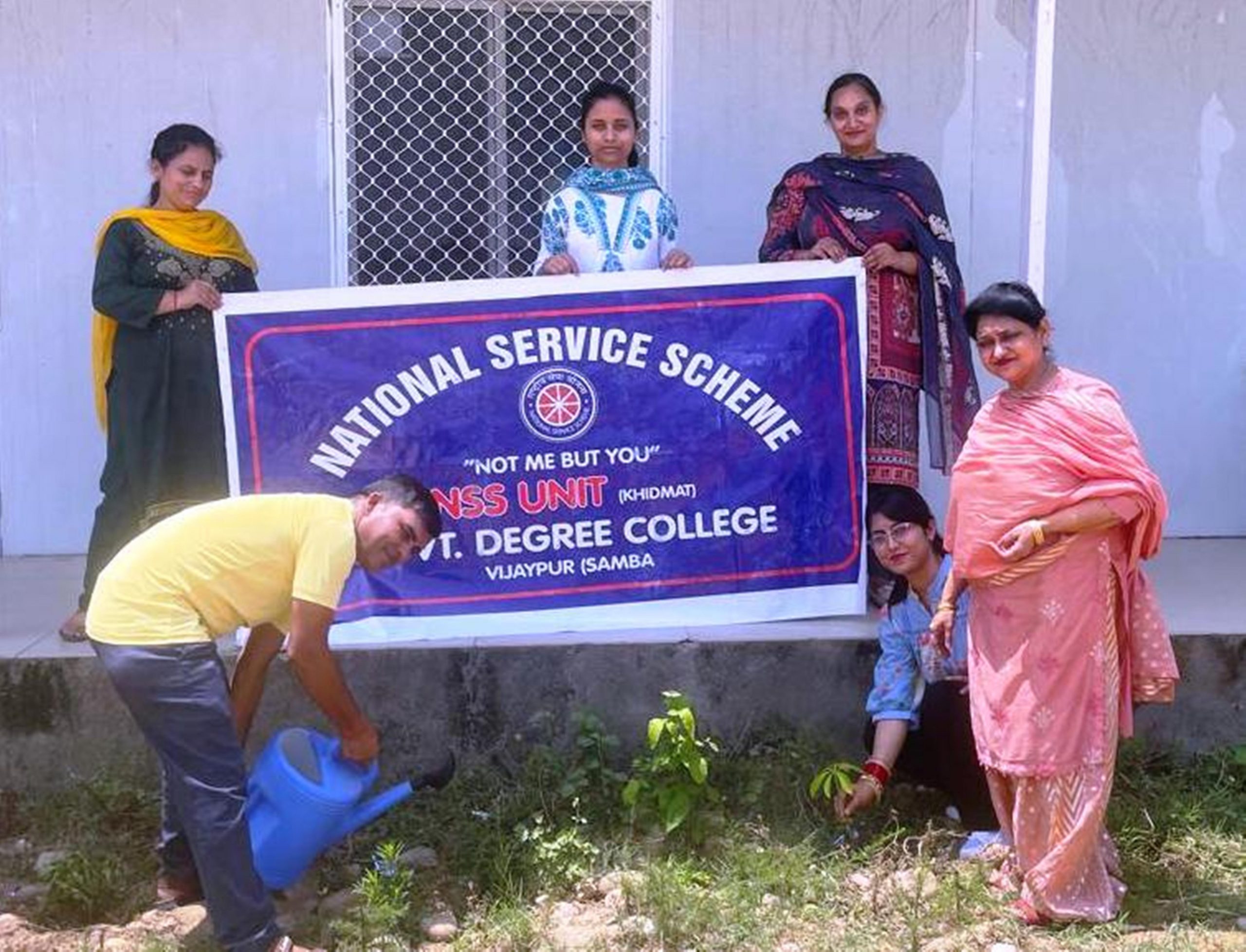 SAMBA, JULY 19 : With the aim of spreading awareness about forest conservation and saving the environment, “Ek Ped Maa Ke Naam” campaign program was organised by NSS unit of Government Degree College Vijaypur in collaboration with EcoClub and Nasha Mukt Abhiyaan Committee under the guidance of Principal Dr. (Prof.) Vandana Verma.