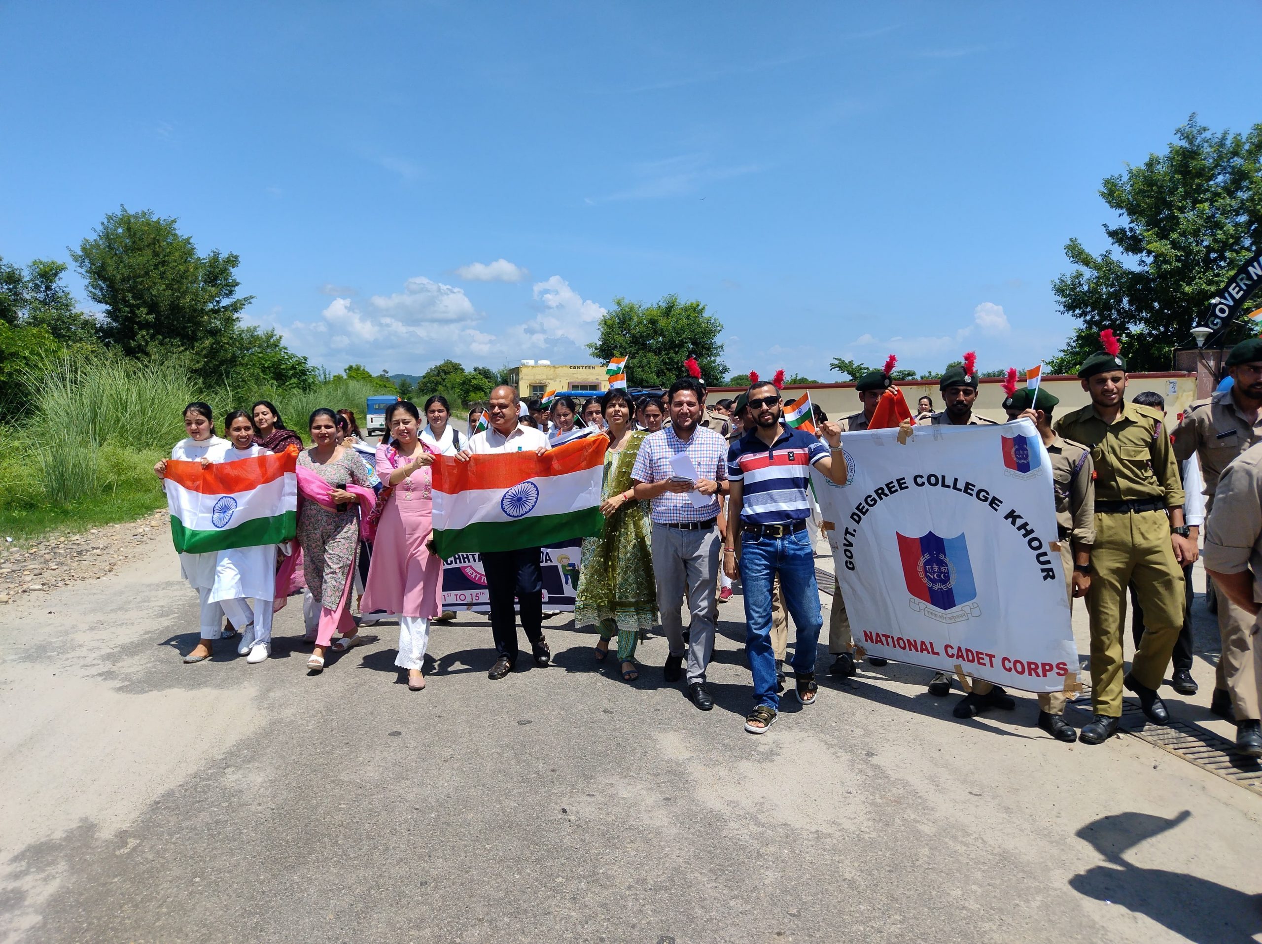 Jammu, August 12 : As a part of ongoing Independence Day Celebration from 1 st to 15 th August to commemorate 77th Independence Day, NSS and NCC Wing of Govt. Degree College Khour organized a Tiranga rally under the patronage of Prof. (Dr.) T.K. Sharma, Worthy Principal GDC Khour.
