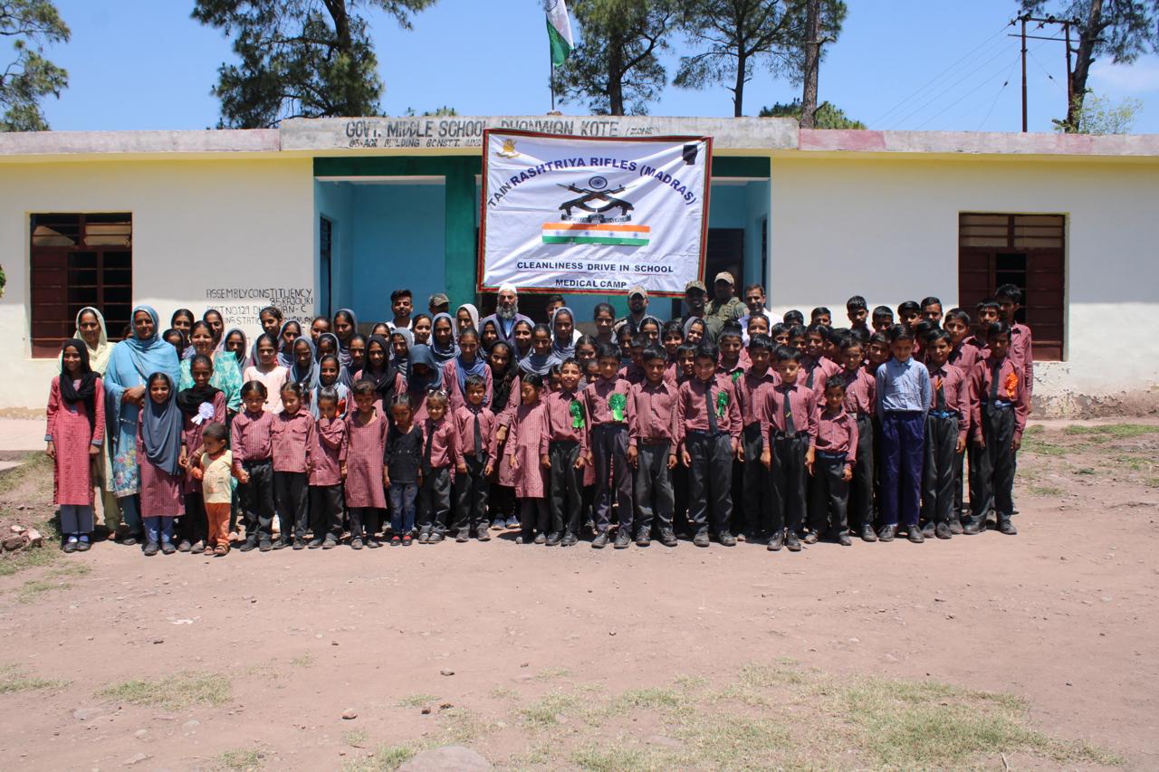 Indian Army Organised Cleanliness Drive at Govt Middle School Dhanwankot, Rajouri.