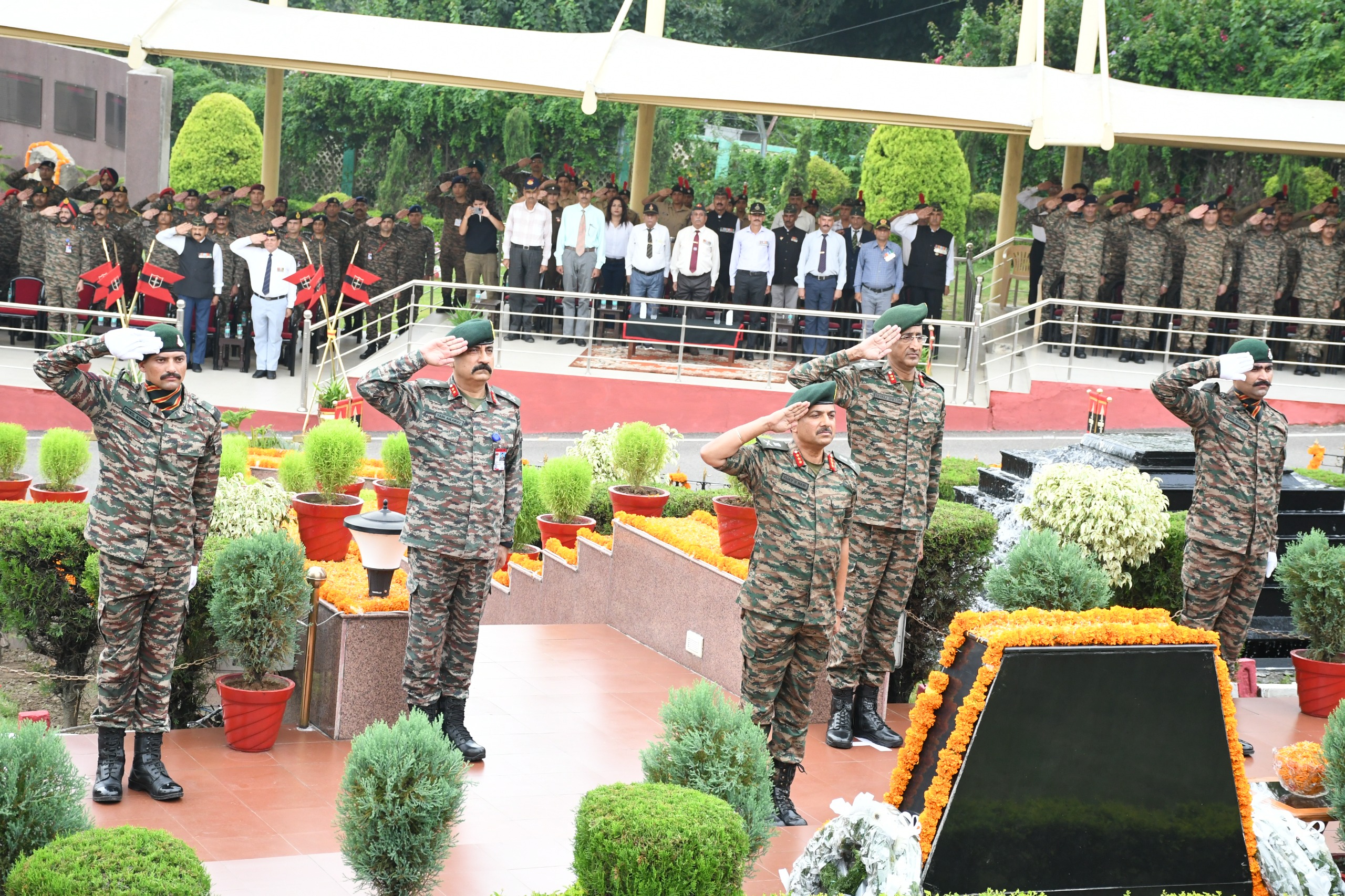 The message from Army Commander Lt Gen MV Suchindra Kumar, PVSM, AVSM, YSM**, VSM on behalf of all troops deployed in Northern Command was that the spirit of our fallen Bravehearts shall always instill in us a sense of pride, devotion to duty and patriotism in the times to come. Furthermore, he exhorted all ranks deployed in Northern Command to live upto the spirit of Kargil heroes and always remain steadfast to secure the frontiers even in adverse weather and treacherous terrain against unpredictable enemies.