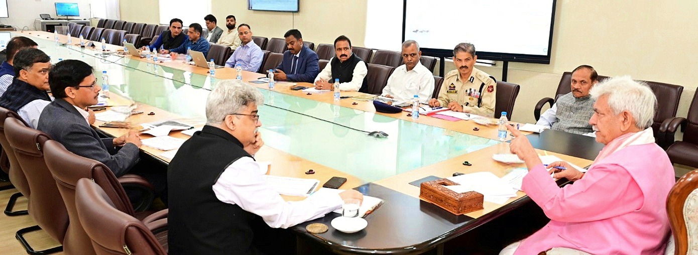 Lieutenant Governor Shri Manoj Sinha on Tuesday chaired a high-level meeting to review the functioning of Home Department. The meeting was attended by Sh Rajeev Rai Bhatnagar, Advisor to Lt Governor; Sh Atal Dulloo, Chief Secretary; Sh RR Swain, DGP J&K, Sh. Chandraker Bharti, Principal Secretary, Home Department, Dr Mandeep Kumar Bhandari, Principal Secretary to Lt Governor and other senior officials.