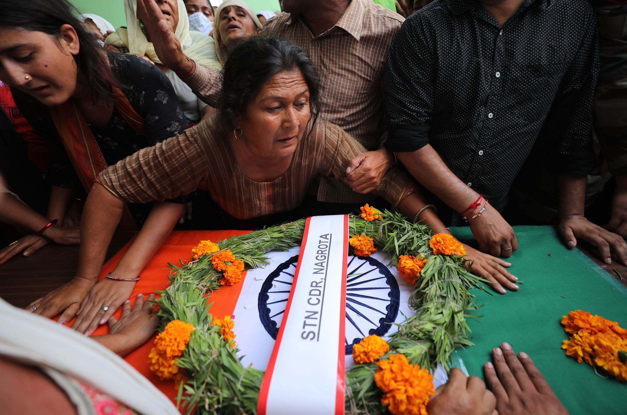 Relatives wailing on the body of martyr Rifleman Shubham Sharma who was martyred in Pakistani firing in Nowgam in Kupwara Sector.