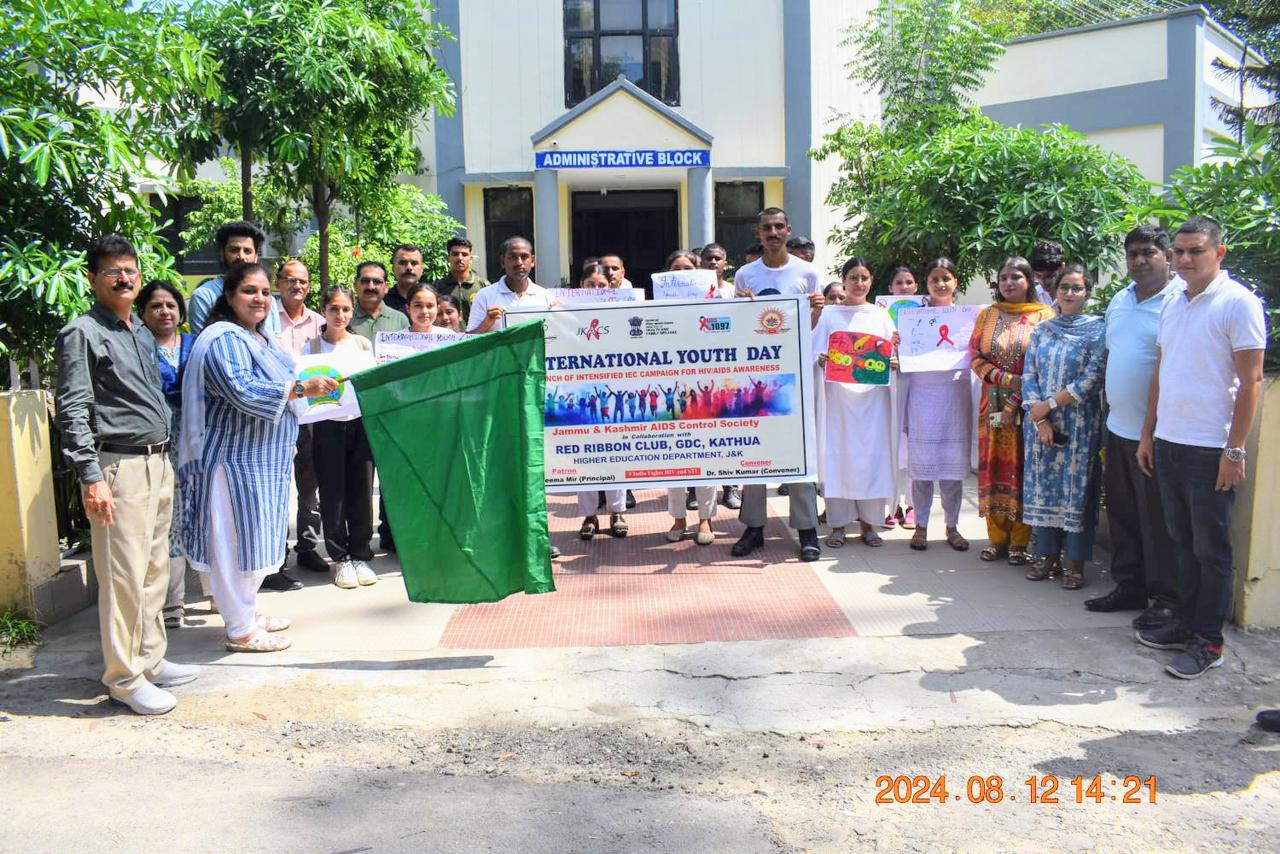 Kathua, August 12 : The Red Ribbon Club of Government Degree College (GDC) Kathua marked International Youth Day by organizing impactful events to raise awareness about HIV/AIDS. The event was organized under the esteemed patronage of Prof.Seema Mir, Principal, GDC, Kathua and convened by Dr. Shiv Kumar, Convener, RRC. A series of Events were organized like the Poster Making Competition and Awareness Rally in which volunteers from RRC, NSS and college cadets participated.