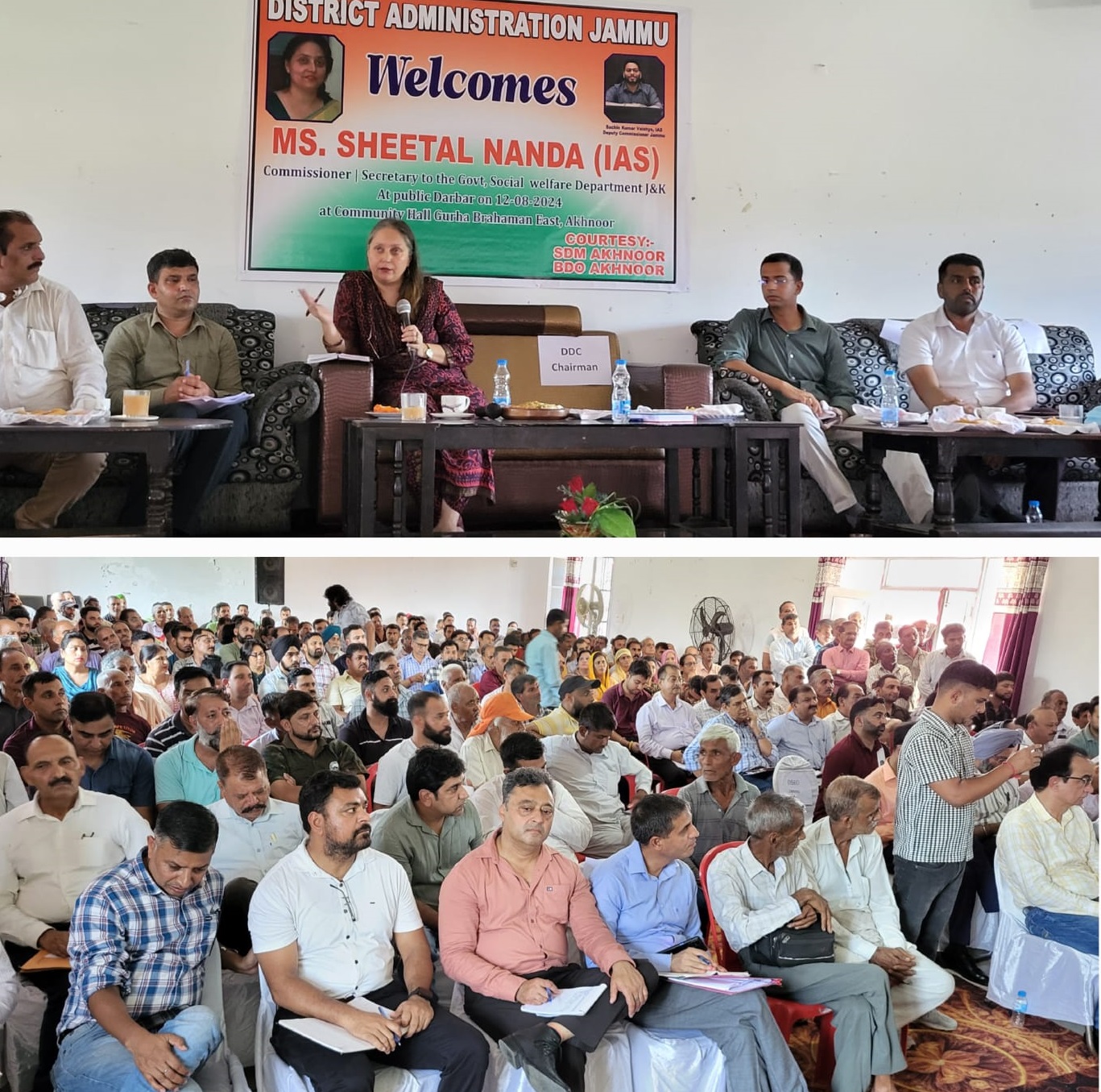JAMMU, AUGUST 12 : Commissioner Secretary Social Welfare Department, Sheetal Nanda, presided over a public darbar at Community Hall Gurha Brahmana East of block Akhnoor today during which she addressed wide range of public concerns and developmental issues.