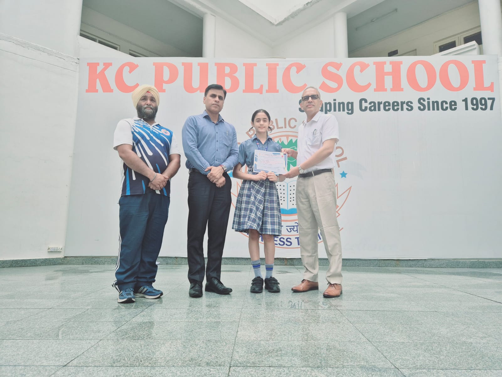 Sadhya Sharma, a class 8 student of K C Public School, has secured first position in the under- 14 category at the District level Yoga Championship organised by District Youth Services and Sports at the Youth Hostel Nagrota, Jammu. The talented young student showcased exceptional skill and dedication in the competition, outshining participants from various schools